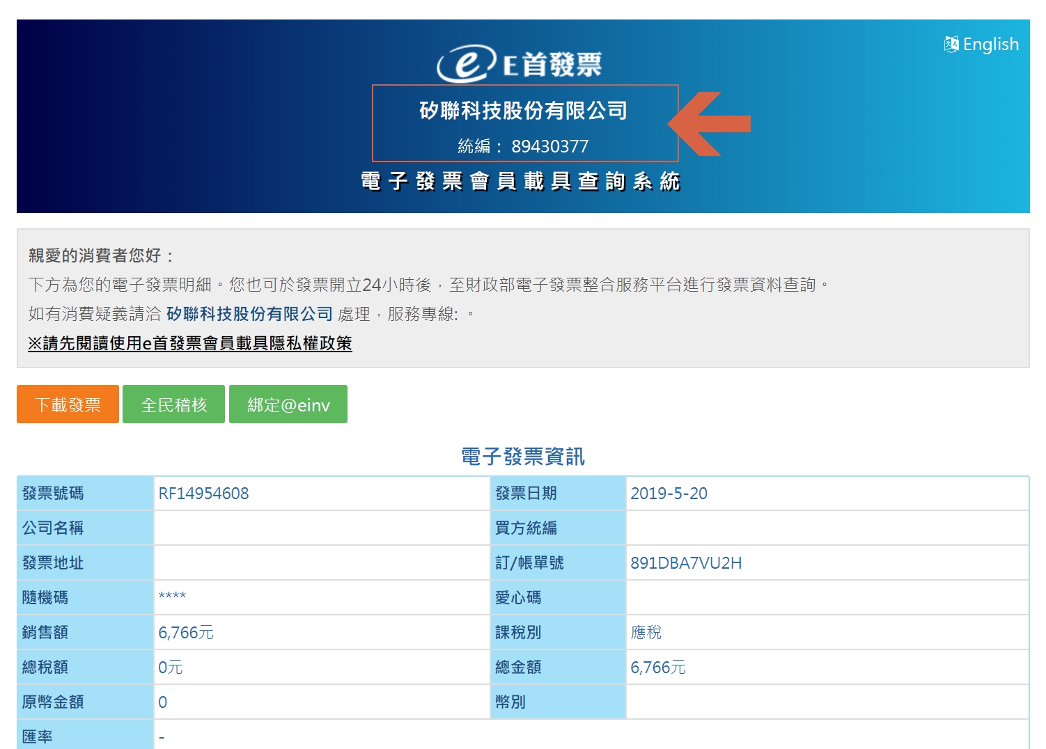 相關文章 如何確認發票來源與店家 文章目錄 收到e首發票的電子發票通知,可是我沒印象我有消費。如過你有類似問題你可以透過以下方式確認你的發票店家。如果你是收到MAIL,MAIL 將會有聯絡消費店的資訊於下方。如果是你不熟悉的店家,你可以透過搜尋該店家經營賣場或去電聯絡詢問。(有些網路店家與登記店家名稱不同。2019年起有些境外電商也開立發票,登記名稱可能是英文。)如果是簡訊,你可以點選綁定連結,同意加入@EINV,並將綁定訊息傳入。操作如下綁定後即可以透過 選單查詢發票檢視該發票。發票上會有該店家與統編資訊。